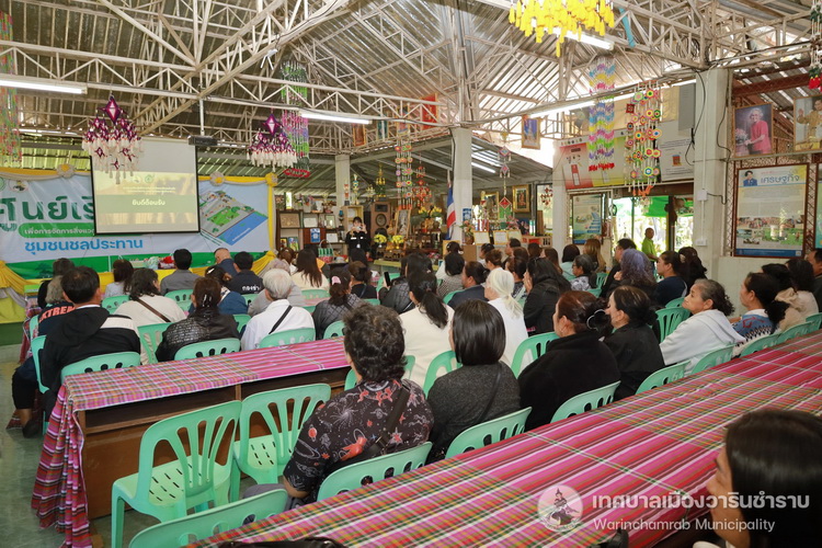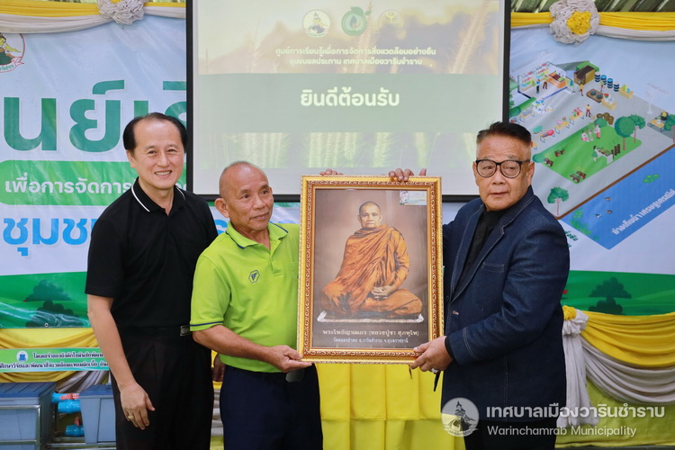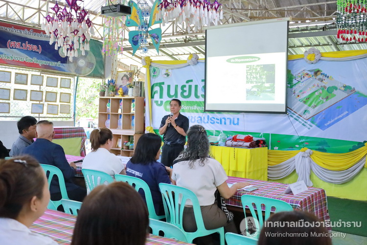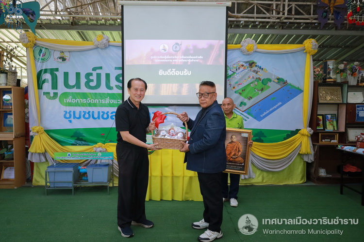 วันที่ 26 พฤศจิกายน 2568 เวลา 09.00 น. ณ ศูนย์เรียนรู้เพื่อการจัดการสิ่งแวดล้อมอย่างยั่งยืน ชุมชนชลประทาน นายจีระชัย ไกรกังวาร นายกเทศมนตรี ได้มอบหมายให้ นายณรงชัย ประสิทธิ์ภูริปรีชา รองนายกเทศมนตรี พร้อมด้วยนางรุ่งนภา ทับหนองฮี รองปลัดเทศบาล รักษาราชการแทนปลัดเทศบาล, หัวหน้าส่วนการงานเทศบาลเมืองวารินชำราบ และคณะทำงานศูนย์การเรียนรู้ฯ ชุมชนชลประทาน ให้การต้อนรับคณะผู้บริหาร สมาชิกสภาองค์การบริหารส่วนตำบล หัวหน้าส่วนการงาน พนักงาน จากเทศบาลตำบลปากน้ำประแส อำเภอแกลง จังหวัดระยอง นำโดยนายไชยรัตน์ เอื้อตระกูล นายกเทศมนตรีตำบลปากน้ำประแส ในการศึกษาดูงานด้านการบริหารจัดการขยะภายในชุมชนของชุมชนชลประทาน ซึ่งเป็นชุมชนต้นแบบในเขตเทศบาลเมืองวารินชำราบที่ประสบความสำเร็จในการลดปริมาณขยะภายในชุมชน ภายใต้การทำกิจกรรมโครงการชุมชนปลอดขยะ Zero Waste ด้วยการนำขยะมารีไซเคิลผลิตเป็นสิ่งของเครื่องใช้ต่างๆ อาทิ ถังขยะลดโลกร้อน,ไม้กวาดจากขวดพลาสติก, เสื่อจากถุงพลาสติก, ผ้ากันเปื้อนจากป้ายไวนิล, เตาชีวมวลจากหม้อหุงข้าวที่ไม่ใช้แล้ว เป็นต้น