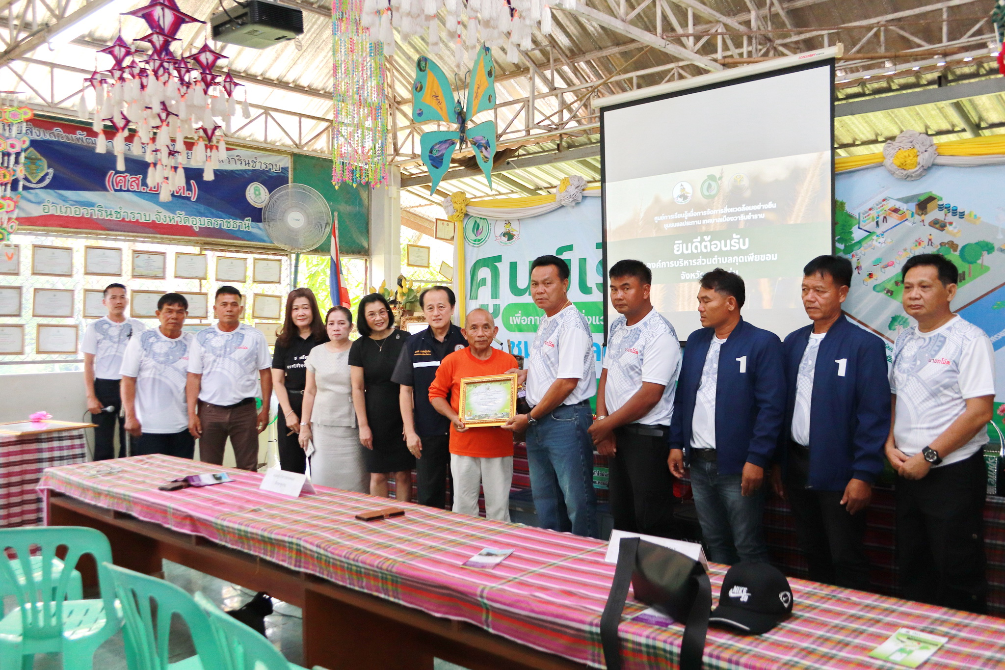 วันที่ 26 มีนาคม 2569 เวลา 09.00 น ณ ศูนย์เรียนรู้เพื่อการจัดการสิ่งแวดล้อมอย่างยั่งยืน ชุมชนชลประทาน นายจีระชัย ไกรกังวาร นายกเทศมนตรี ได้มอบหมายให้ นายณรงชัย ประสิทธิ์ภูริปรีชา รองนายกเทศมนตรี พร้อมด้วยนางรุ่งนภา ทับหนองฮี รองปลัดเทศบาล รักษาราชการแทนปลัดเทศบาล, หัวหน้าส่วนการงานเทศบาลเมืองวารินชำราบ และคณะทำงานศูนย์การเรียนรู้ฯ ชุมชนชลประทาน ให้การต้อนรับคณะผู้บริหาร สมาชิกสภาเทศบาล หัวหน้าส่วนราชการ และพนักงาน จากองค์การบริหารส่วนตำบลกุดเพียขอม อำเภอชนบท จังหวัดขอนแก่น นำโดยนายพีระพล นาที นายกองค์การบริหารส่วนตำบลกุดเพียขอม ในการศึกษาดูงานด้านการบริหารจัดการขยะภายในชุมชนของชุมชนชลประทาน ซึ่งเป็นชุมชนต้นแบบในเขตเทศบาลเมืองวารินชำราบที่ประสบความสำเร็จในการลดปริมาณขยะภายในชุมชน ภายใต้การทำกิจกรรมโครงการชุมชนปลอดขยะ Zero Waste ด้วยการนำขยะมารีไซเคิลผลิตเป็นสิ่งของเครื่องใช้ต่างๆ อาทิ ถังขยะลดโลกร้อน,ไม้กวาดจากขวดพลาสติก, เสื่อจากถุงพลาสติก, ผ้ากันเปื้อนจากป้ายไวนิล, เตาชีวมวลจากหม้อหุงข้าวที่ไม่ใช้แล้ว เป็นต้น